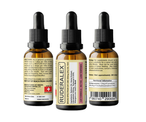 Broad Spectrum Organic CBD 3% 300mg Extract in Salmon Oil For Cats 10ml